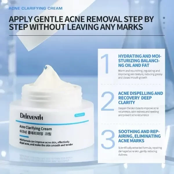 La Crema Facial Clarificante para Acné Deleventh de 30 g fue creada especialmente para pieles con tendencia acneica. Su fórmula con ácido salicílico ayuda a purificar la piel en profundidad, actuando tanto de día como de noche. Con su uso regular, contribuye a reducir imperfecciones, mejorar la textura y realzar la apariencia general del rostro.